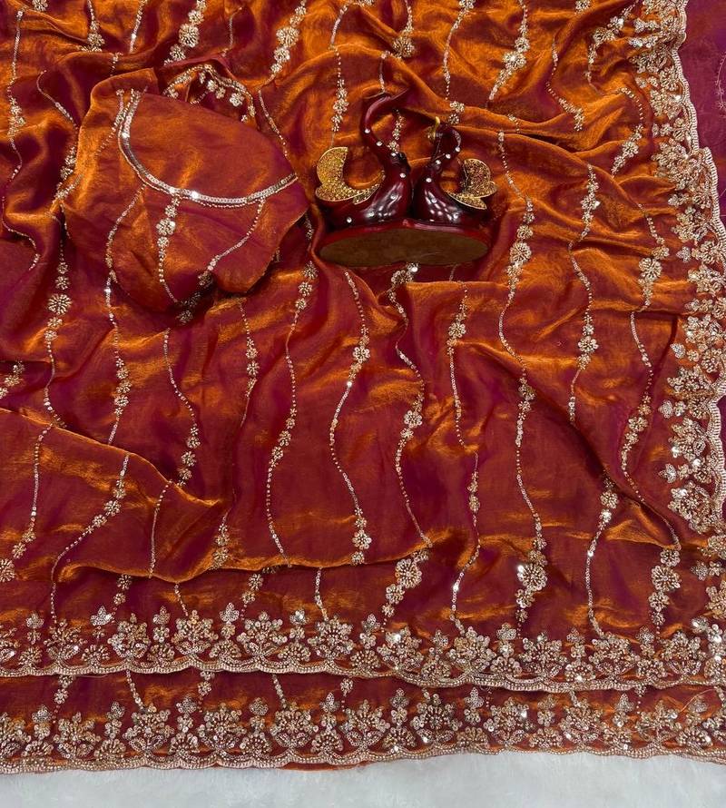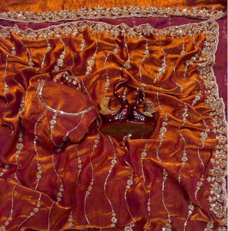 | Product Name | Orange Color Embroidered Space Silk Saree | |