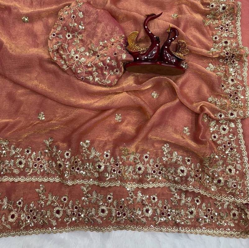 | Product Name | Peach Color Embroidered Chiffon Saree | |