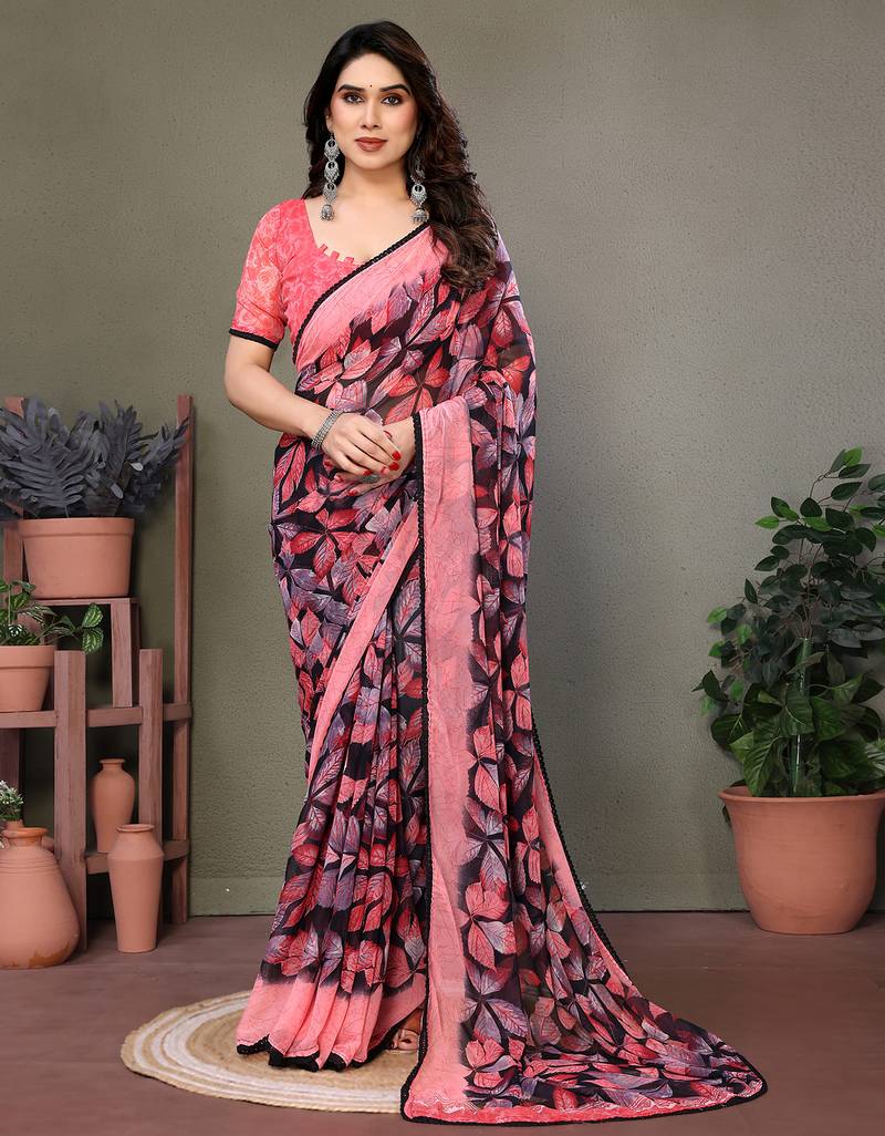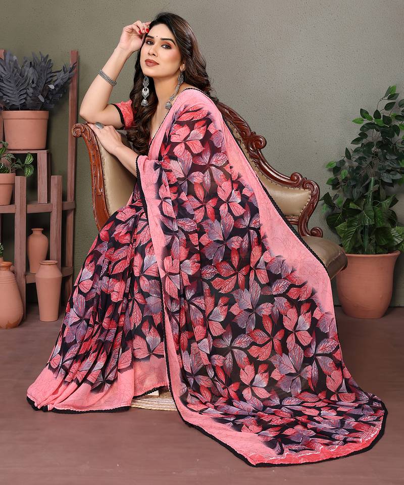 | Product Name | Pink Color Digital Printed Chiffon Saree | |