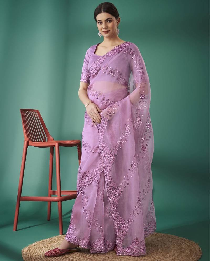 | Product Name | Pink Color Embroidered Organza Silk Blend Saree | |