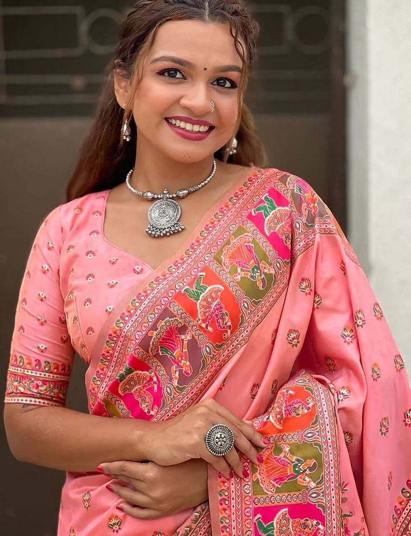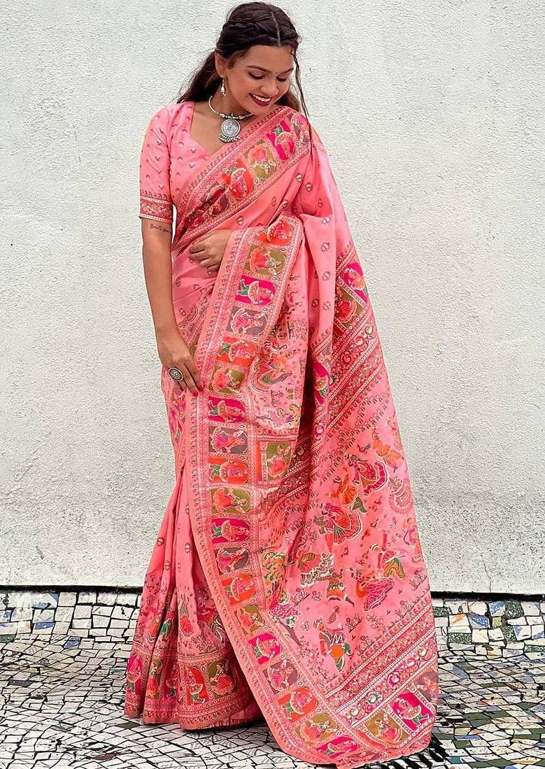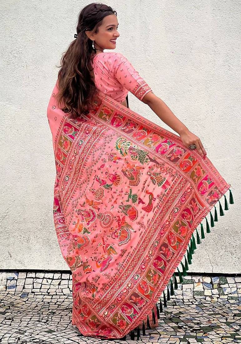 | Product Name | Pink Silk Blend Saree With Kashmiri Woven Work | |