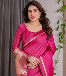 Pink color zari woven banarasi art silk saree
