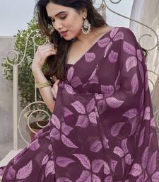 Plum color digital printed chiffon saree