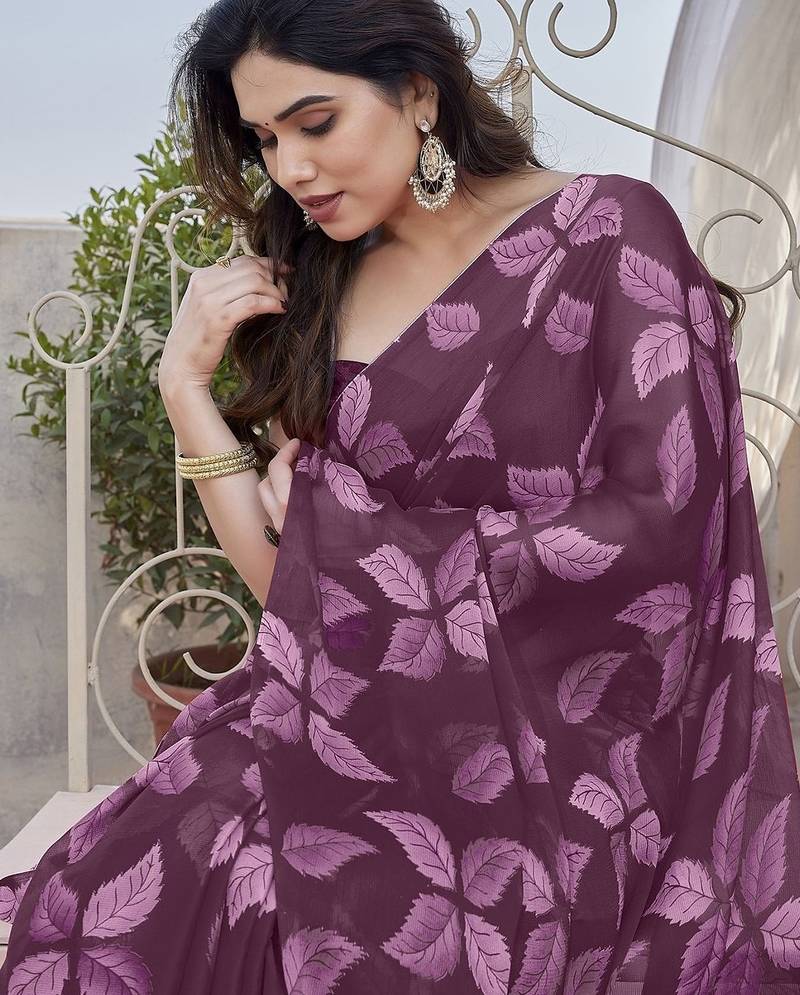 | Product Name | Plum Color Digital Printed Chiffon Saree | |