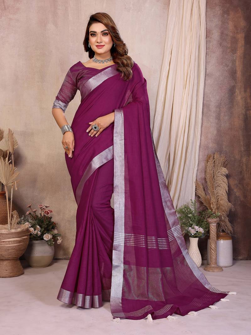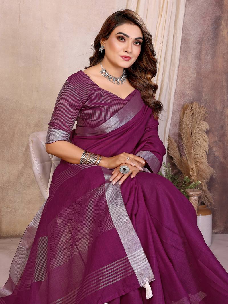 | Product Name | Plum Color Zari Border Cotton Saree | |