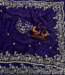 Purple color embroidered chiffon saree