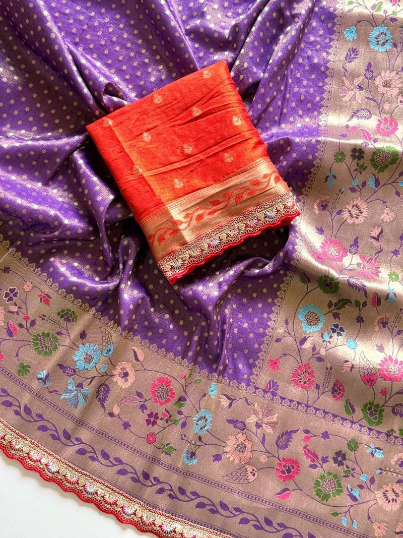 Purple color embroidery coding siquence work paithani silk saree