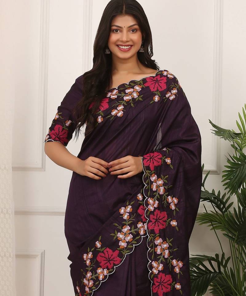 | Product Name | Purple Color Thread Work Manipuri Silk Blend Saree | |