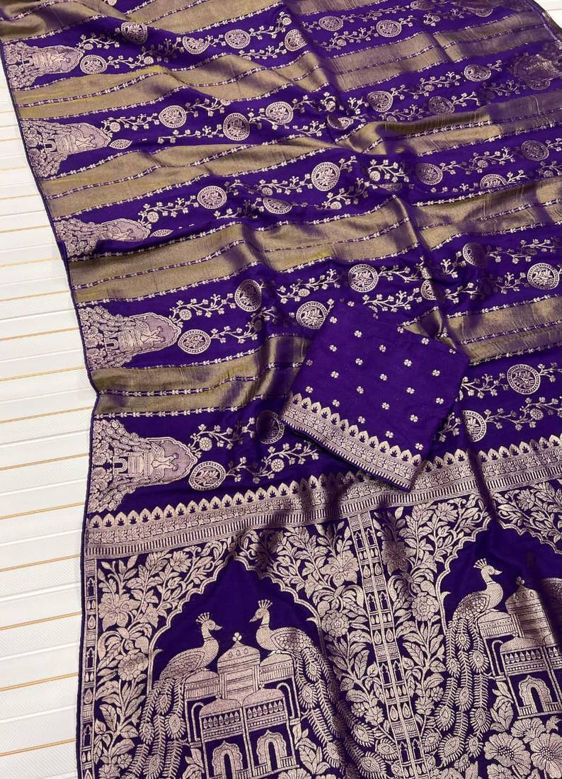 Purple color jari jaqurad weaving chhinya tisu silk blend saree