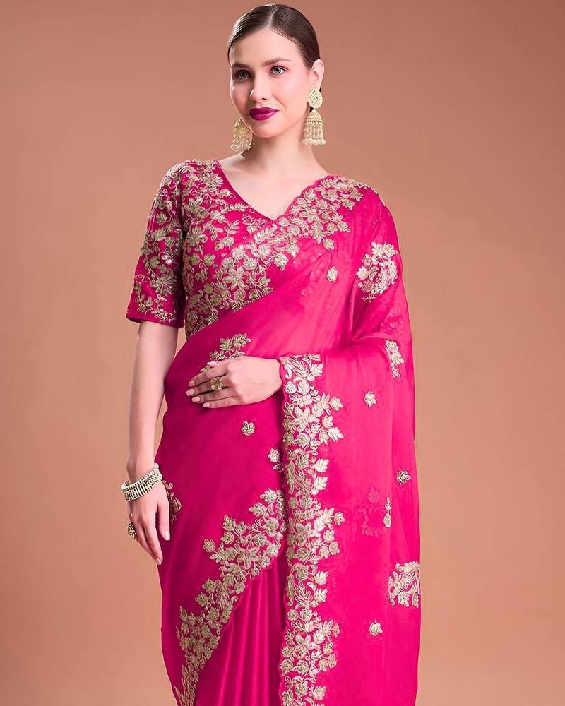 | Product Name | Rani Pink Color Embroidered Rangoli Silk Blend Saree | |