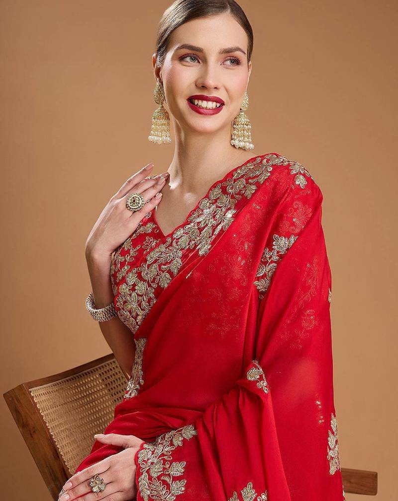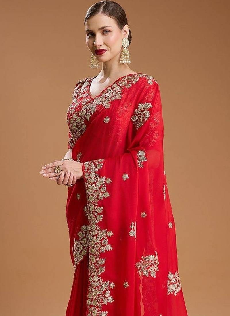 | Product Name | Red Color Embroidered Rangoli Silk Blend Saree | |
