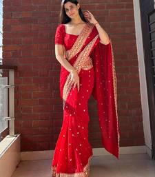 Red color sequance and dori embroidery work georgette saree