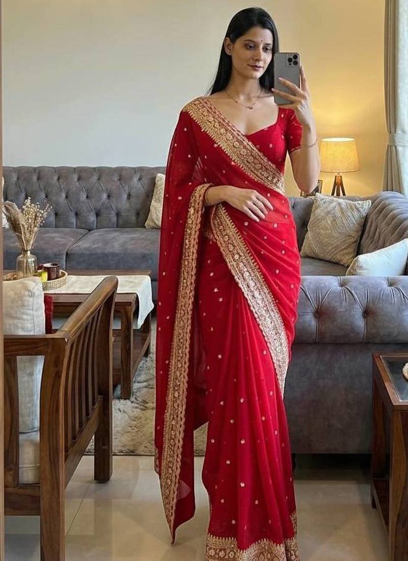 | Product Name | Red Color Sequance And Dori Embroidery Work Georgette Saree | |
