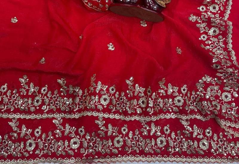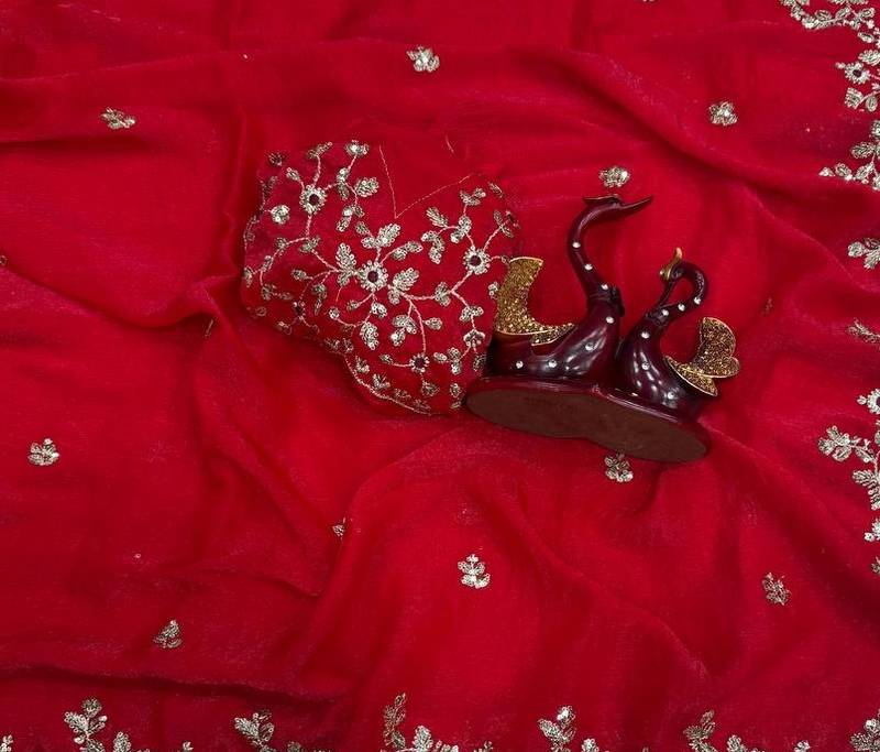 | Product Name | Red Color Sequence Embroidery Work Frendy Chiffon Saree | |