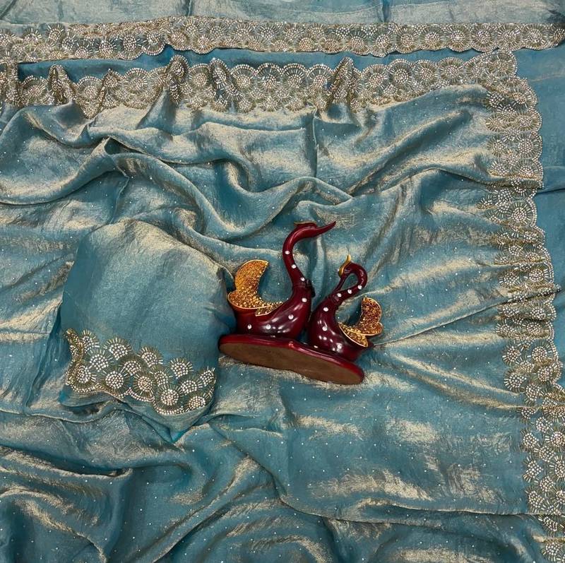 | Product Name | Sky Blue Color Diamond Work Space Silk Saree | |