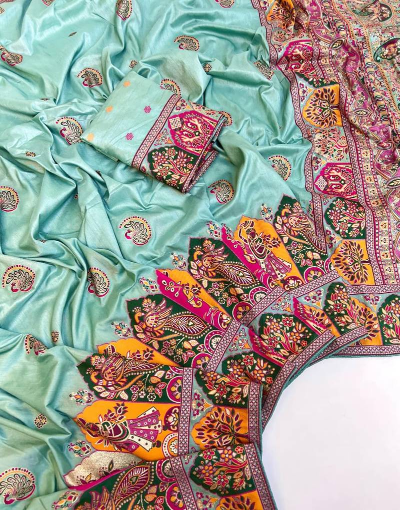 Sky Blue Color Zari Weaving Work Pashmina Silk Blend Saree