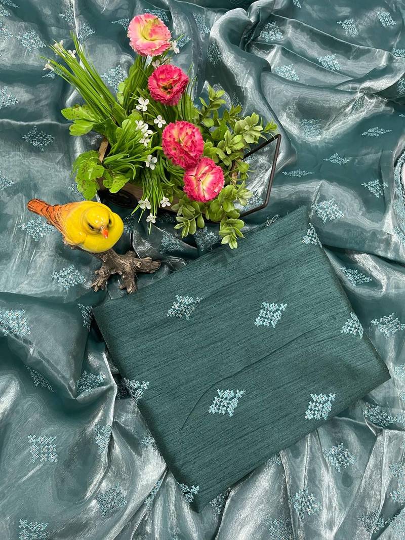 | Product Name | Teal Silk Saree With Sequins Embroidery Work | |