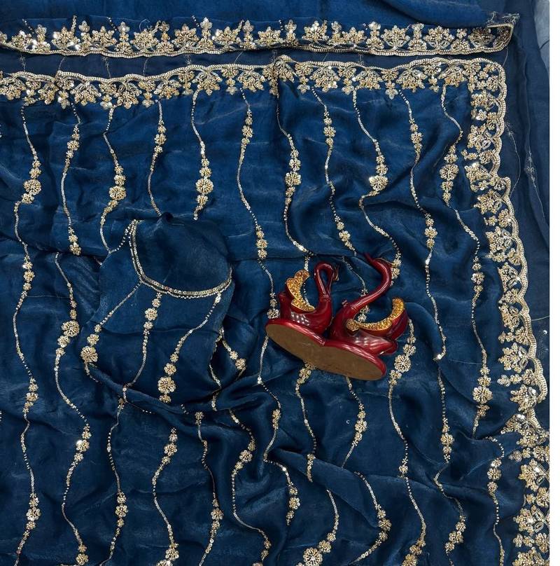 | Product Name | Teal Color Embroidered Space Silk Saree | |