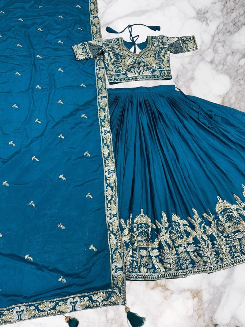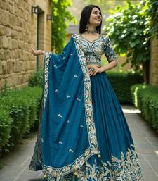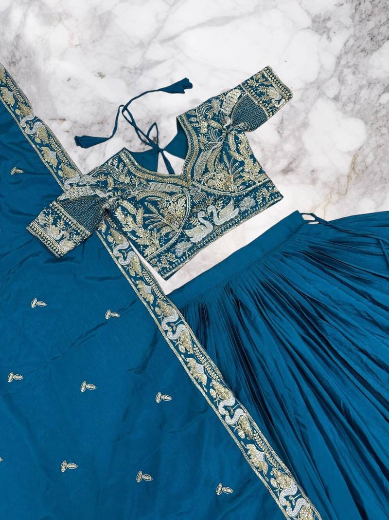 | Product Description | Lehenga Set Styles Like This Elegant Teal Chinon Ensemble Offer The Perfect Blend Of Festive Charm And Refined Craftsmanship. Crafted From Premium Chinon Fabric, This Designer Lehenga Set Features Intricate Thread Embroidery And Delicate Sequin Work That Adds Subtle Shimmer And Luxurious Detail. The Beautifully Embroidered Blouse Showcases Artistic Motifs And Fine Embellishments, While The Soft Micro Cotton Lining Ensures Comfortable Wear Throughout Long Celebrations. The Matching Chinon Lehenga Is Designed With A Graceful 3.5 Meter Flair Supported By Canvas Patta, Creating A Voluminous And Flattering Silhouette That Enhances The Overall Elegance Of The Outfit. Completing The Ensemble Is A Coordinating Chinon Dupatta Adorned With Detailed Embroidery And Sequin Accents, Adding A Graceful Finishing Touch. Ideal For Weddings, Festive Gatherings, Receptions, And Cultural Celebrations, This Embroidered Teal Lehenga Set Brings Together Traditional Artistry And Modern Sophistication. Pair It With Statement Jewelry And Elegant Heels For A Stunning Ethnic Look Perfect For Special Occasions. |