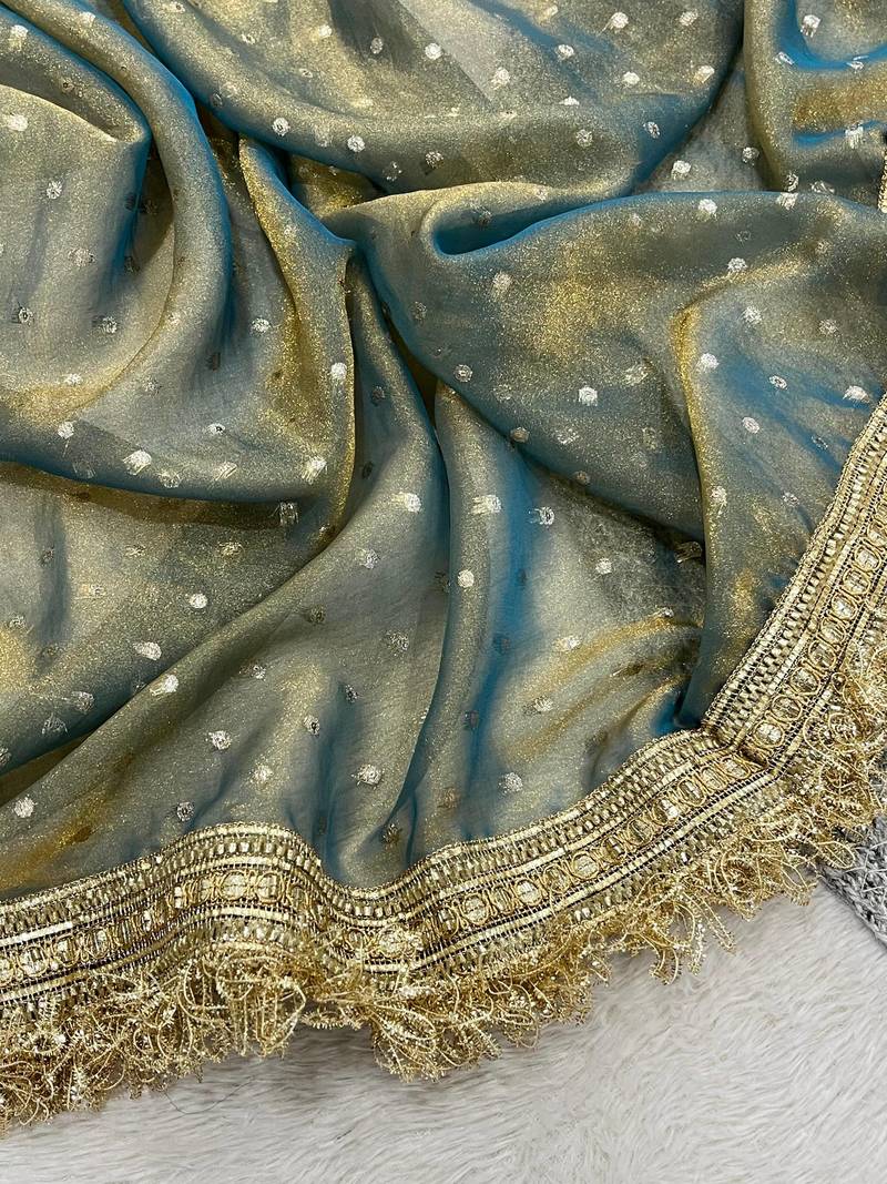 | Product Description | Saree Fabric : Moss Silk With Jacquard Butti