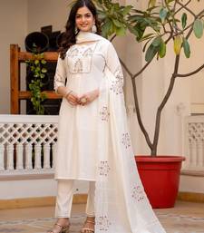 | Product Name | White Color Embroidery Sequins With Hand Work Viscose Silk Kurta Pant Set | |