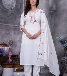White color embroidery thread with hand work roman silk kurta pant set stitched