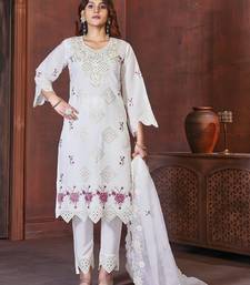 White color embroidery with sequins & heavy hand work viscose roman kurti pant set stitched