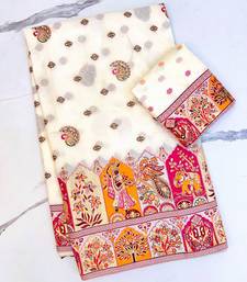 White color zari weaving work pashmina silk blend saree