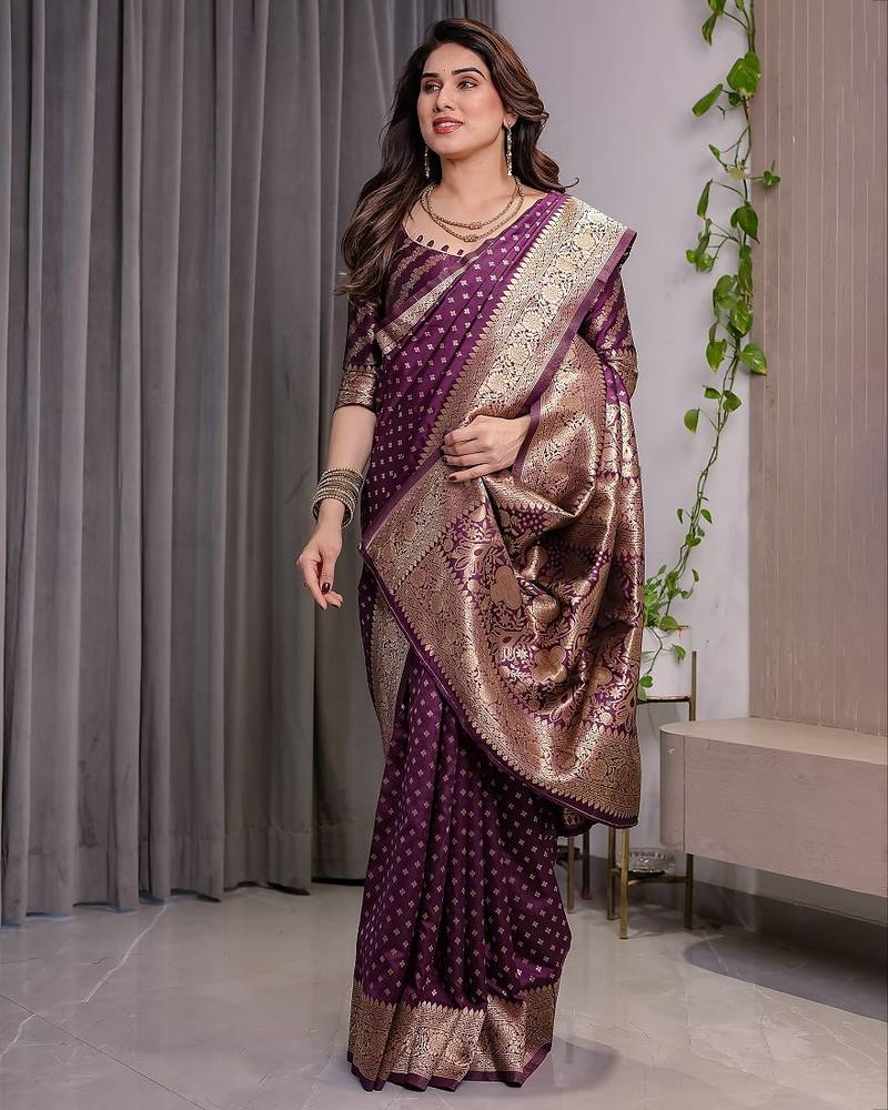 | Product Name | Wine Color Zari Woven Banarasi Art Silk Saree | |