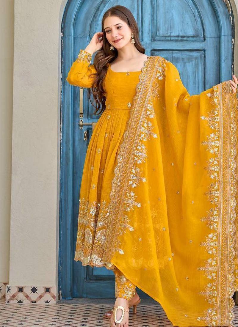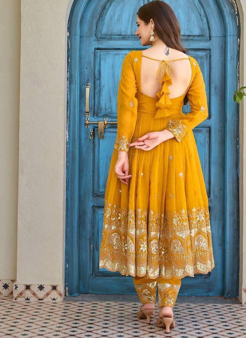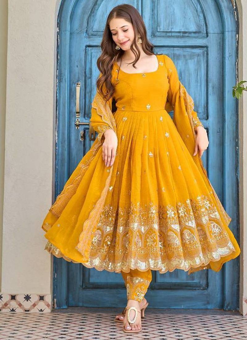 Yellow color embroidery with sequin & thread work top botton dupatta set stitched