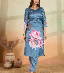 Grey printed cotton reyon kurta pant set stitched