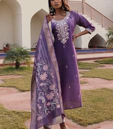 The Kurta Is Beautifully Crafted In Lavender Simmer Silk Featuring Elegant Thread And Sequin Embroidery Enhanced With Fine Embellishments Throughout. The Front Yoke Displays Delicate Detailed Threadwork While The Neckline Is Adorned With Refined Borders. Three Quarter Sleeves Showcase Embroidered Panels With Elegant Detailing, Providing A Premium Handcrafted Aesthetic. The Straight Silhouette Flatters All Body Types While Ensuring Comfortable, Graceful Wear.