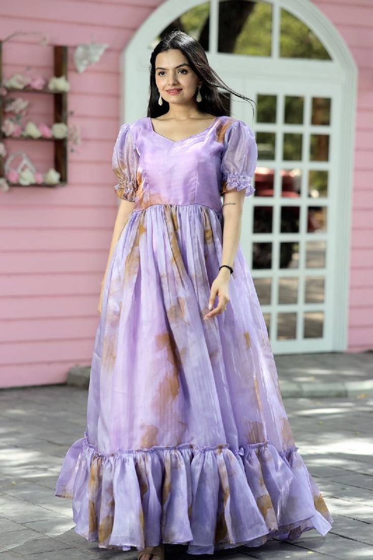 | Product Name | Light Purple Jimmy Silk With Rich Multi Print Work Gown | |