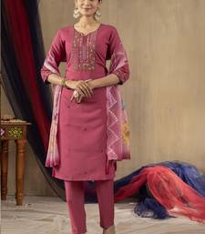Onion pink roman silk thread embroidered designer salwar suit stitched
