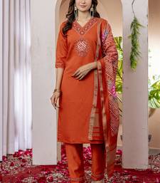 Orange viscose silk thread embroidered designer salwar suit stitched