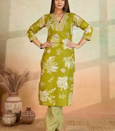Product Name Parrot Green Printed Cotton Blend Kurta Pant Set
