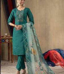 Rama green roman silk thread embroidered designer salwar suit stitched