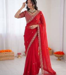 Saree : Color- Red / Fabric- Organza