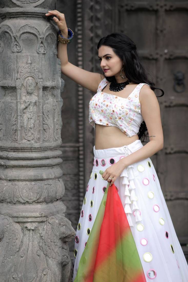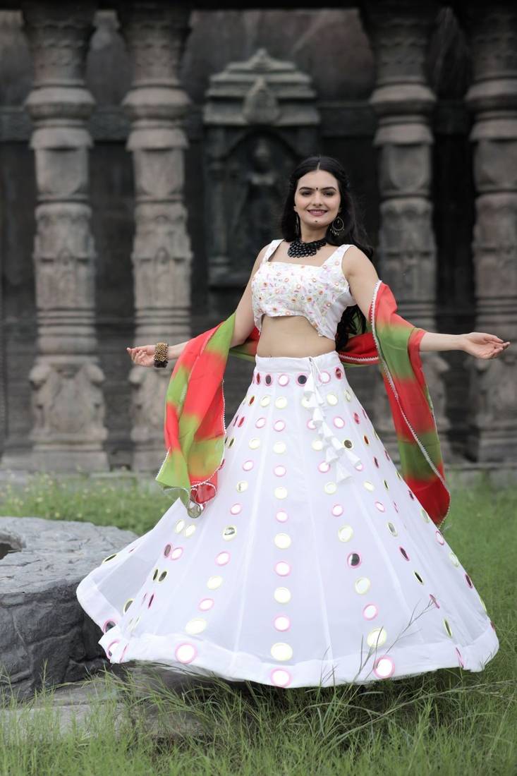 | Product Name | White Faux Georgette With Real Mirror Work Lehanga | |