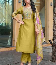 Experience Vibrant Elegance With This Stunning Golden Yellow Salwar Suit, Expertly Designed For Women Who Love Radiant, Eye Catching Ethnic Fashion. This Complete Three Piece Ensemble Combines Luxurious Fabrics, Intricate Embroidery, And Traditional Artistry To Create An Unforgettable Festive Look.