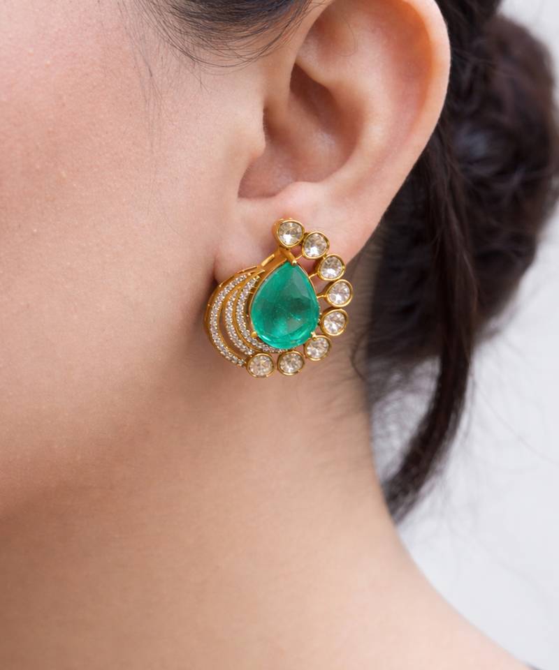 | Product Name | Gold Plated Kundan Green Stones Stud Earrings | |