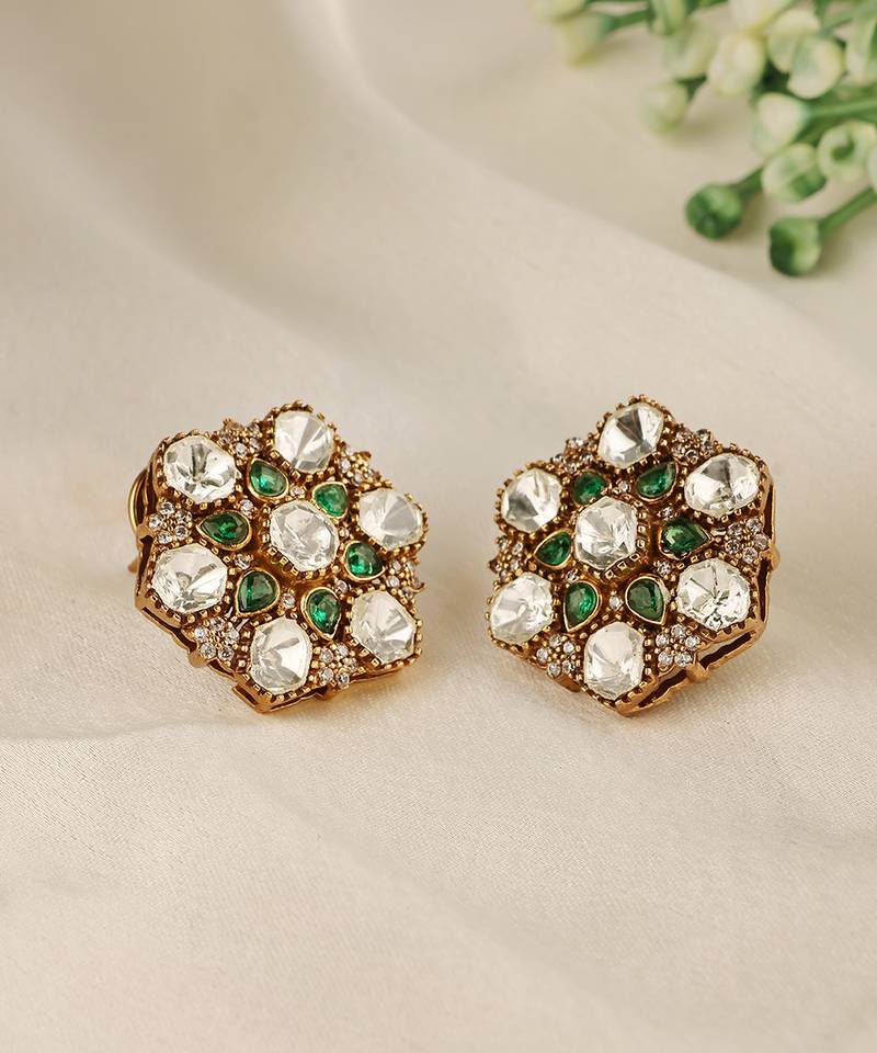 | Product Name | Gold Plated Kundan Green Stones Stud Earrings | |