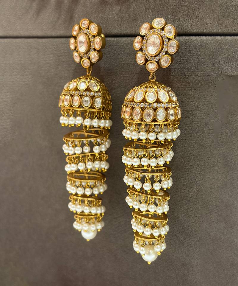 | Product Description | These Gold Plated Kundan Jhumka Earrings Exude Traditional Elegance And Royal Charm. Crafted With Intricate Kundan Detailing And A Radiant Gold Finish, They Offer Graceful Movement And A Festive Appeal. Perfect For Weddings And Celebrations, They Beautifully Enhance Ethnic Ensembles With Timeless Sophistication.