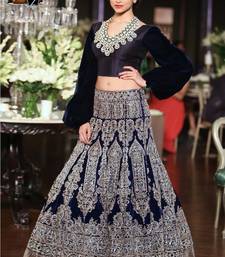 Royal-blue embroidered velvet unstitched lehenga with dupatta