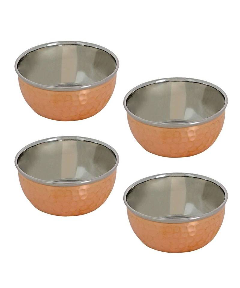 | Product Description | Prisha India Craft Dinnerware Copper Traditional Dinner Set Thali Plate, Bowls, Fork, Glass Spoon And Serving Spoon, Diameter 13 Inch Stainless Steel Copper Thali Set Of 2 |