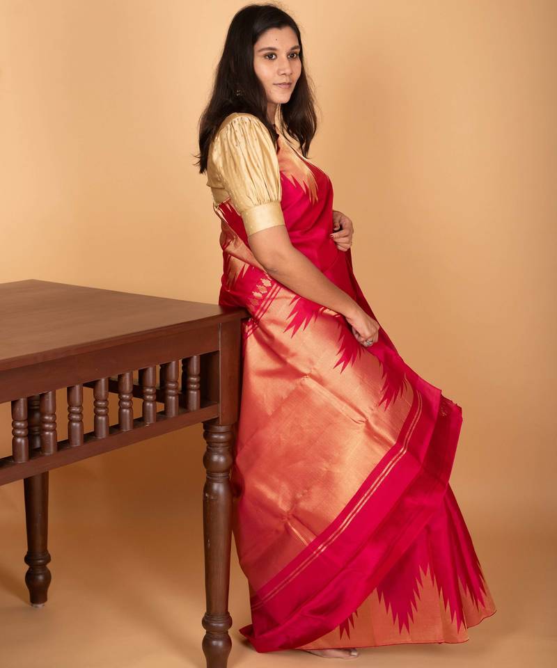 | Product Name | Amaranth Pink Temple Border Pure Kanchi Silk Saree | |