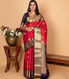 | Product Name | Apple Red And Midnight Blue Pure Kanjivaram Silk Saree | |