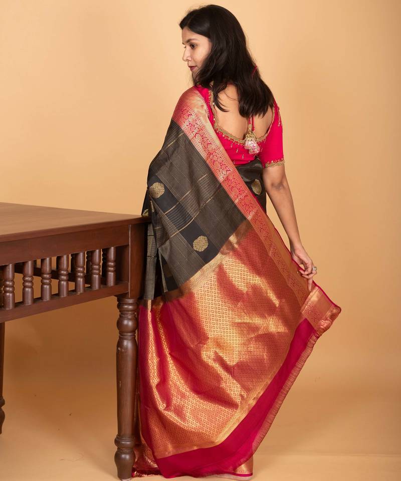 | Product Name | Black And Pink Checked Pure Kanjivaram Silk Saree | |