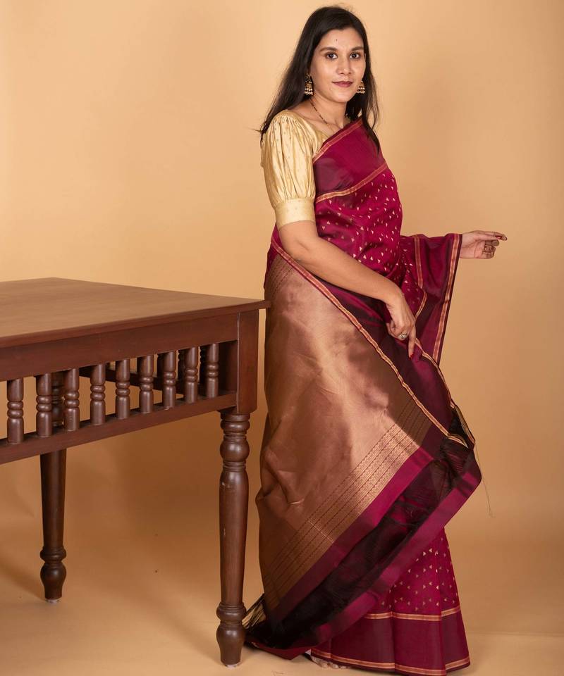 Blood red butta pure kanchi silk saree
