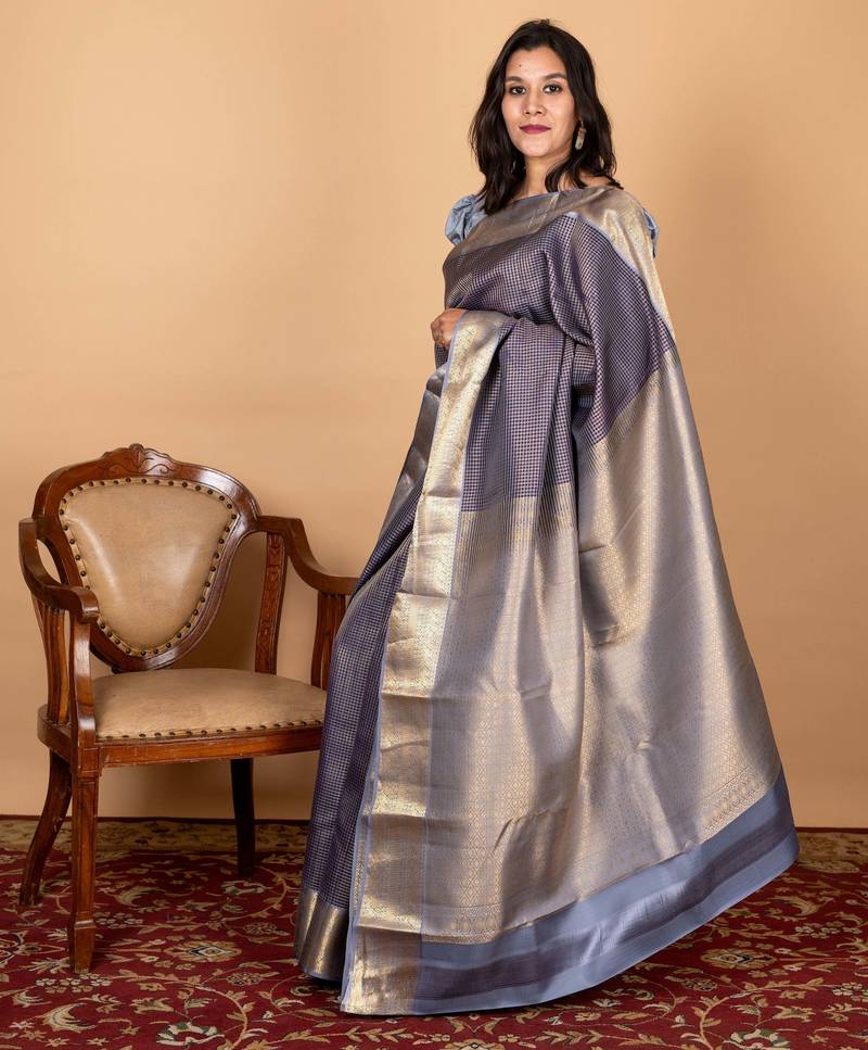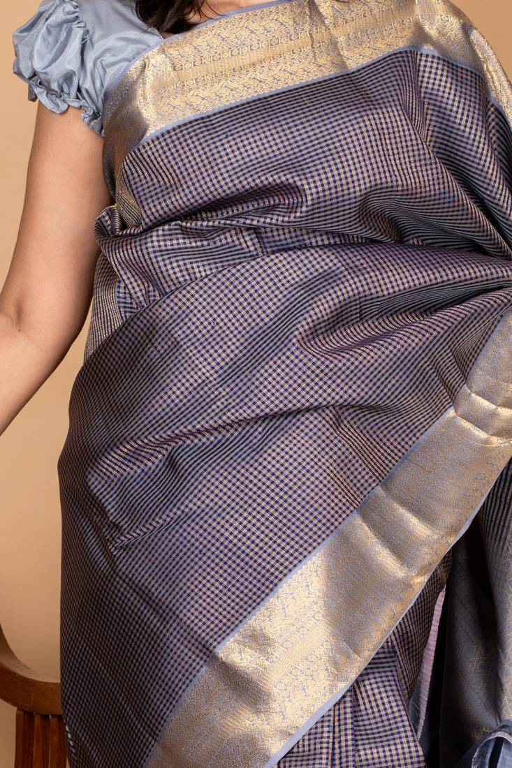 Blue and grey small border silk saree